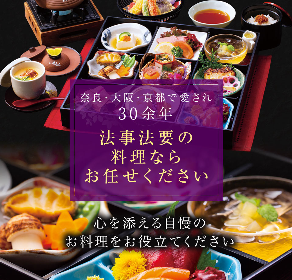奈良・八尾・藤井寺で寿司・弁当・オードブルの 出前・宅配、ケータリングなら「甚八」にお任せ下さい。 腕利きの職人が作る本格和食の仕出し弁当、 熟練寿司職人が丹精込めてにぎる本格寿司には 市場直送の新鮮素材を使用。 奈良市で仕出し宅配を始め42年! 老舗の味をお楽しみください。